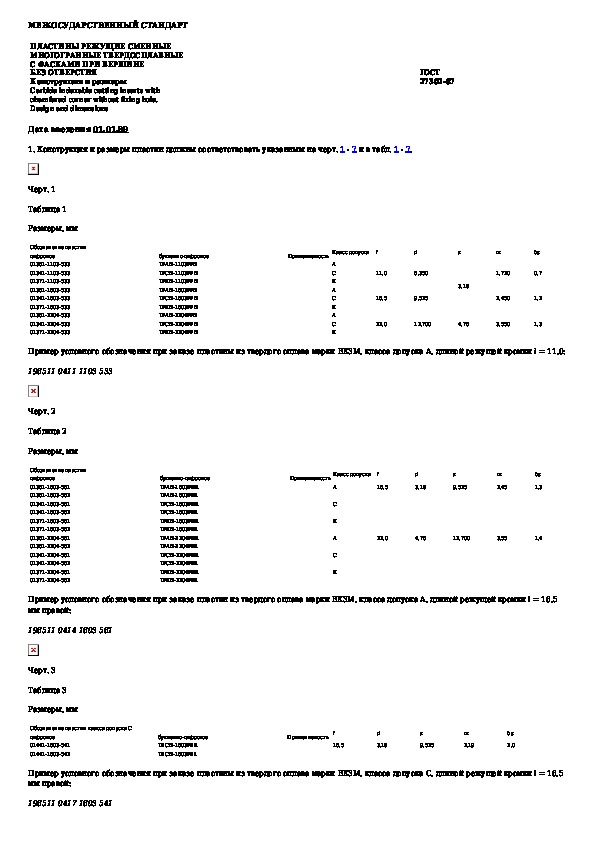 Наша цель состоит в том, чтобы предоставить вам быстрый доступ к содержанию документа Пластины режущие сменные многогранные твердосплавные с фасками при вершине без отверстия. Конструкция и размеры.