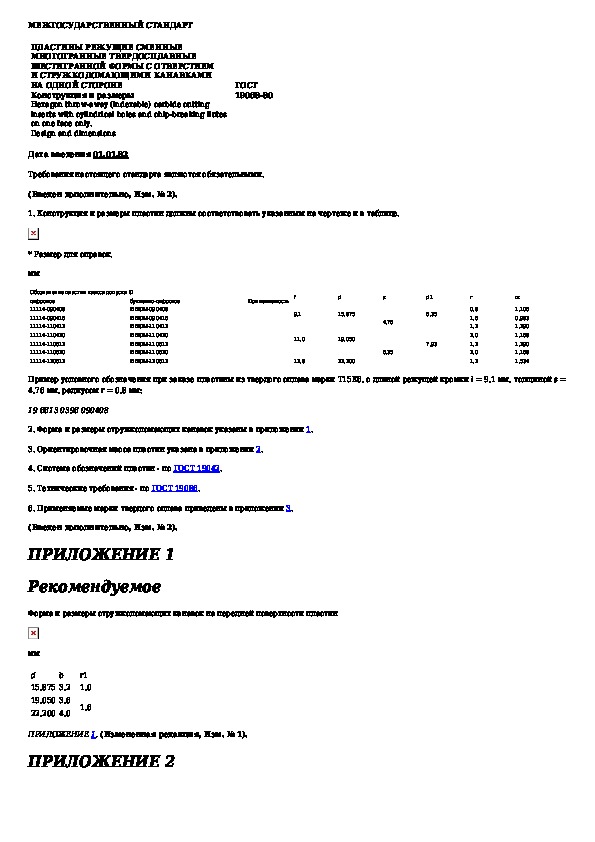 Наша цель состоит в том, чтобы предоставить вам быстрый доступ к содержанию документа Пластины режущие сменные многогранные твердосплавные шестигранной формы с отверстием и стружколомающими канавками на одной стор.