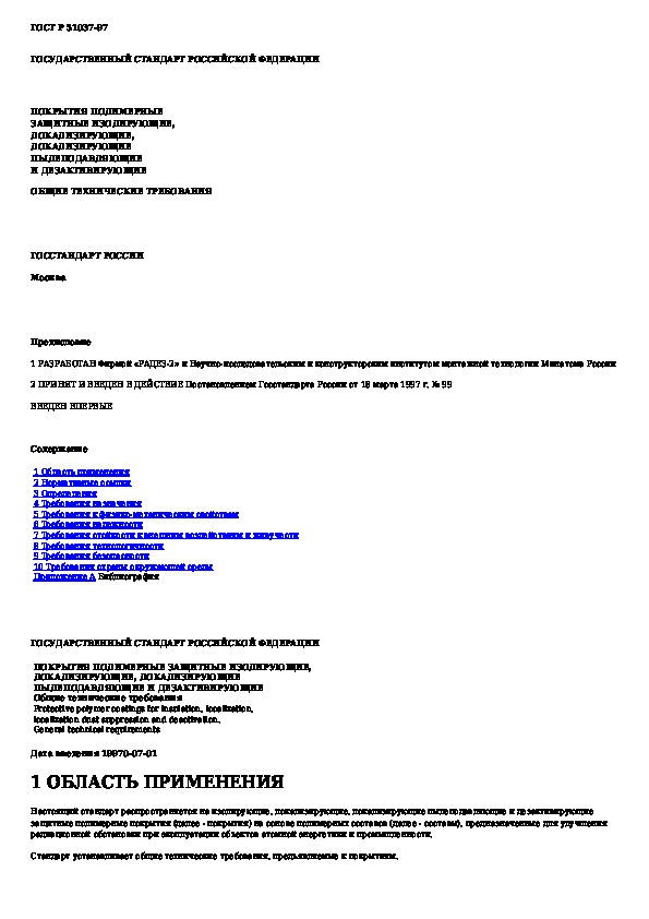 ГОСТ Р 51037-97: Покрытия полимерные защитные изолирующие, локализирующие, локализирующие пылеподавляющие и дезактивирующие. Общие технические т