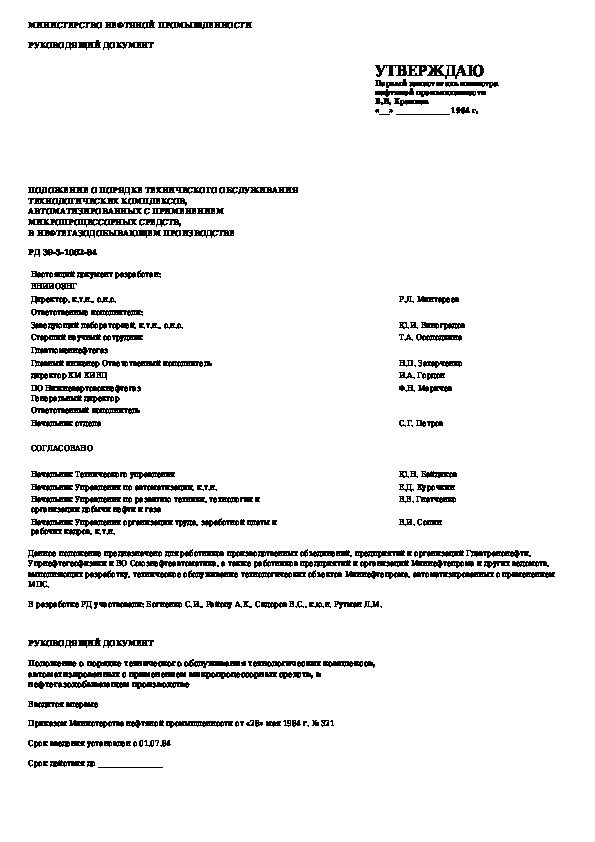 РД 39-5-1062-84: Положение о порядке технического обслуживания технологических комплексов, автоматизированных с применением микропроцессорных с