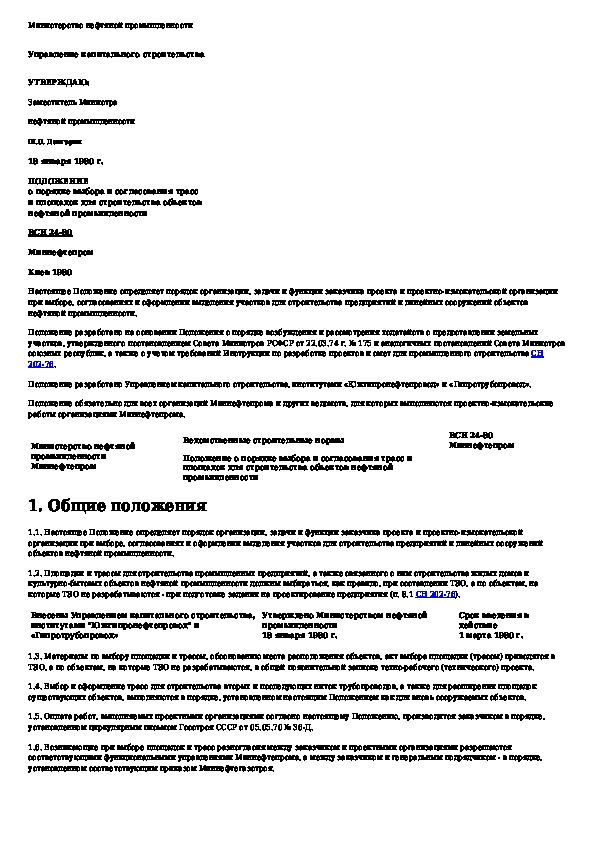 Наша цель состоит в том, чтобы предоставить вам быстрый доступ к содержанию документа Положение о порядке выбора и согласования трасс и площадок для строительства объектов нефтяной промышленности.