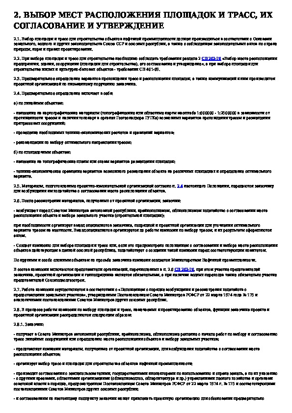 Положение о порядке выбора и согласования трасс и площадок для строительства объектов нефтяной промышленности
