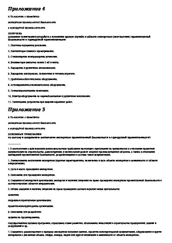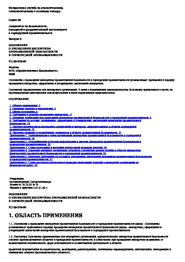 Положение о проведении экспертизы промышленной безопасности в горнорудной промышленности
