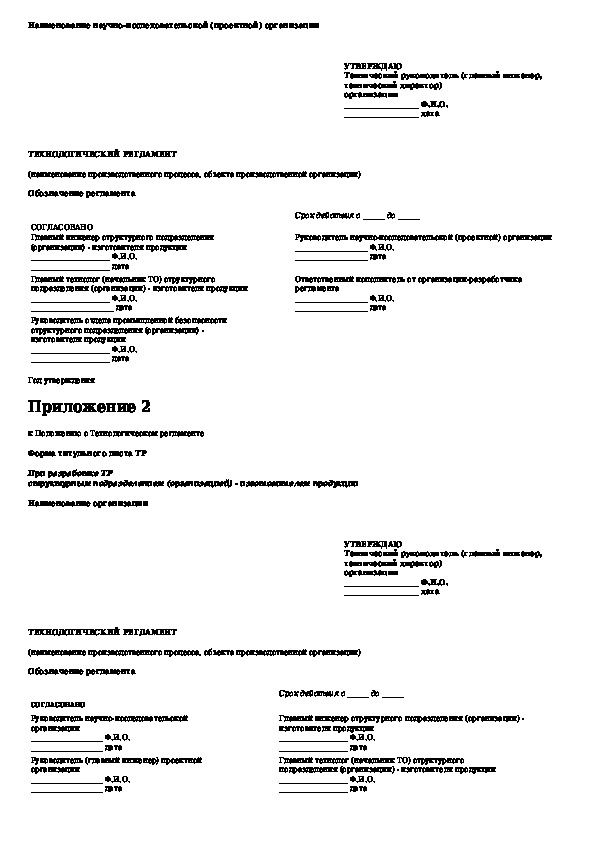 Положение о технологическом регламенте на производство продукции для газоперерабатывающих заводов и производств