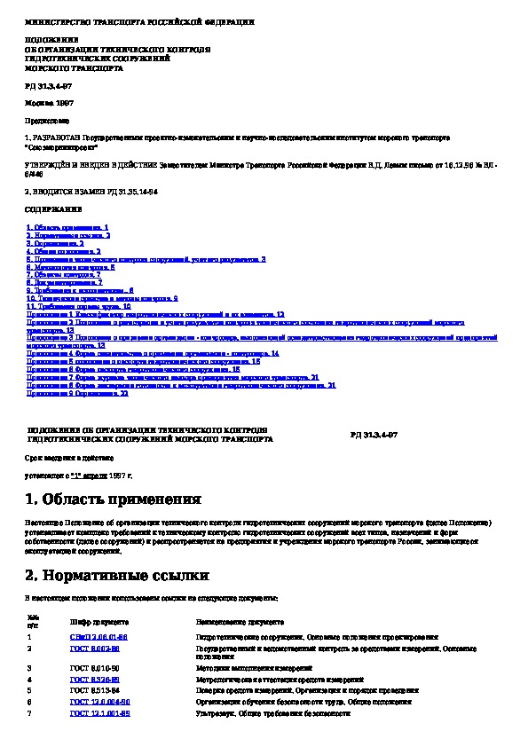 Наша цель состоит в том, чтобы предоставить вам быстрый доступ к содержанию документа Положение об организации технического контроля гидротехнических сооружений морского транспорта.