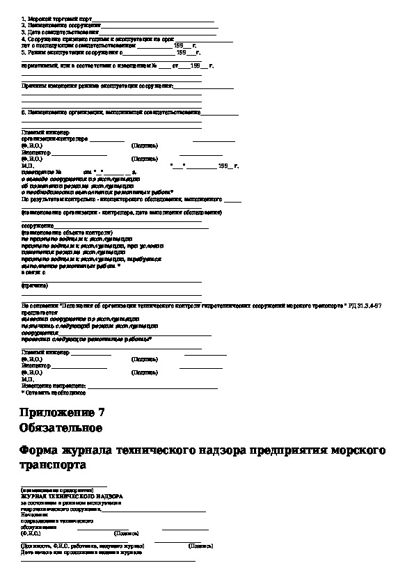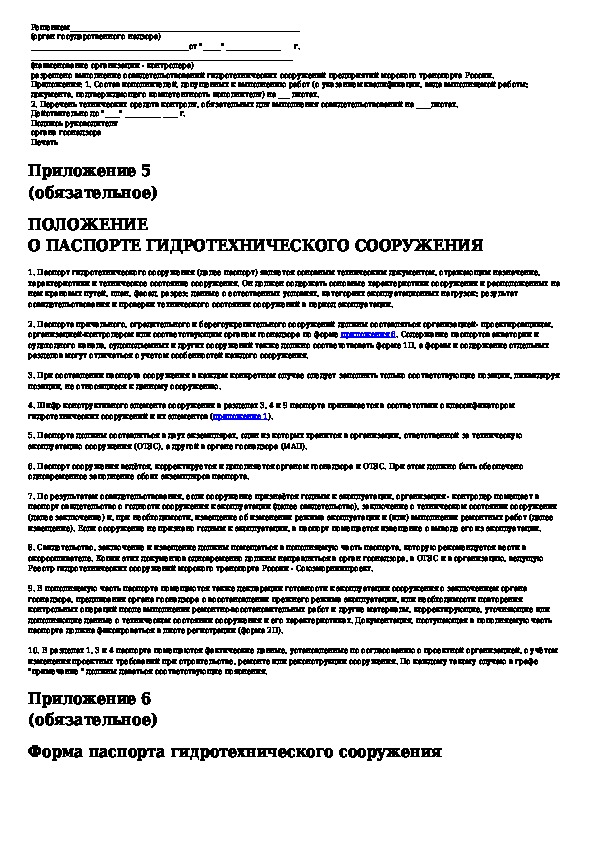 Положение об организации технического контроля гидротехнических сооружений морского транспорта