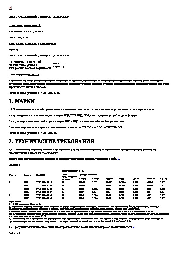 ГОСТ 12601-76: Порошок цинковый. Технические условия