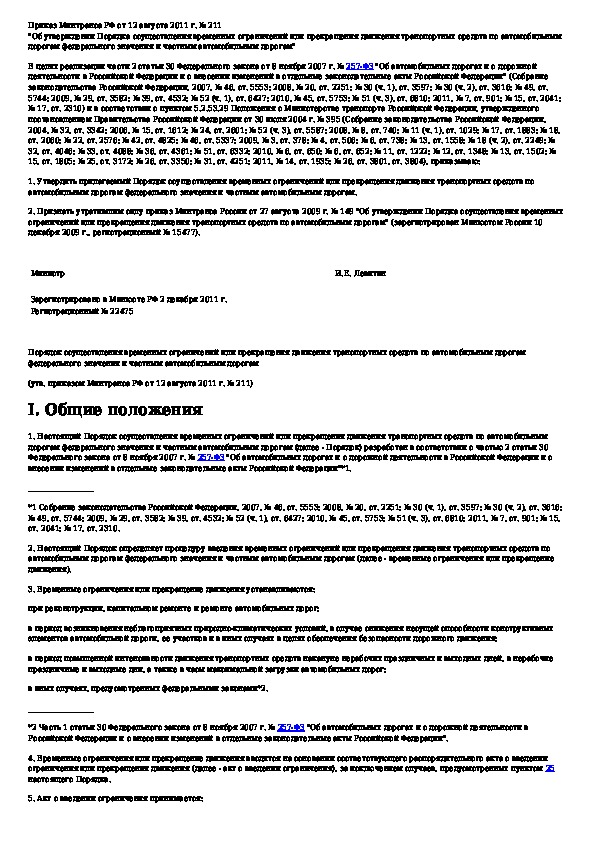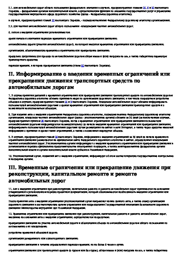 Наша цель состоит в том, чтобы предоставить вам быстрый доступ к содержанию документа Порядок осуществления временных ограничений или прекращения движения транспортных средств по автомобильным дорогам федеральног.