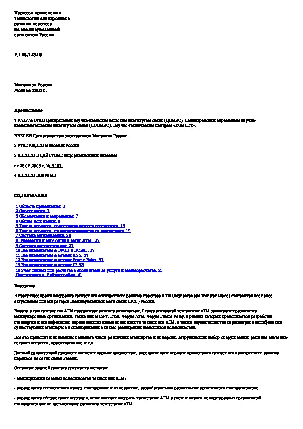 РД 45.123-99: Порядок применения технологии асинхронного режима переноса на Взаимоувязанной сети связи России