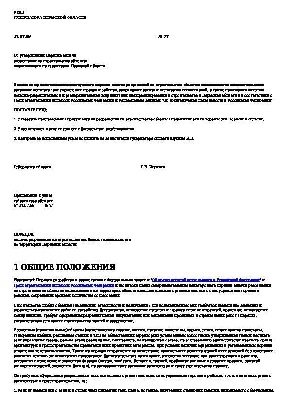 Наша цель состоит в том, чтобы предоставить вам быстрый доступ к содержанию документа Порядок выдачи разрешений на строительство объектов недвижимости на территории Пермской области.