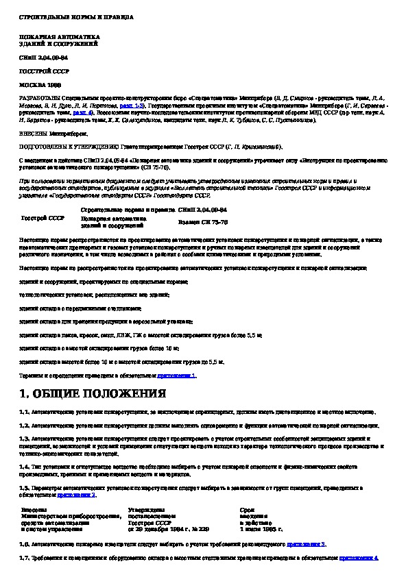 СНиП 2.04.09-84: Пожарная автоматика зданий и сооружений
