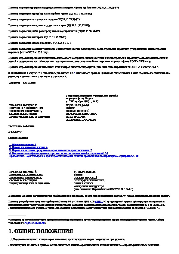 Наша цель состоит в том, чтобы предоставить вам быстрый доступ к содержанию документа Правила морской перевозки животных, пищевых продуктов, сырья животного происхождения и кормов.