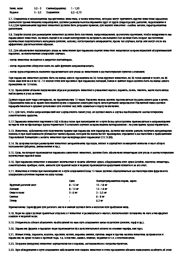 Правила морской перевозки животных, пищевых продуктов, сырья животного происхождения и кормов