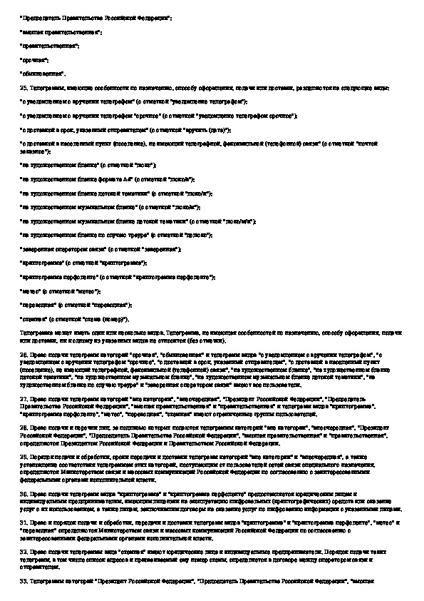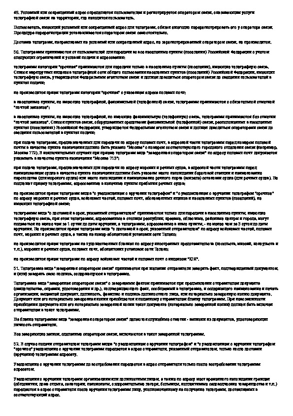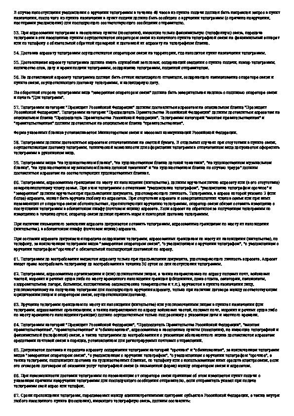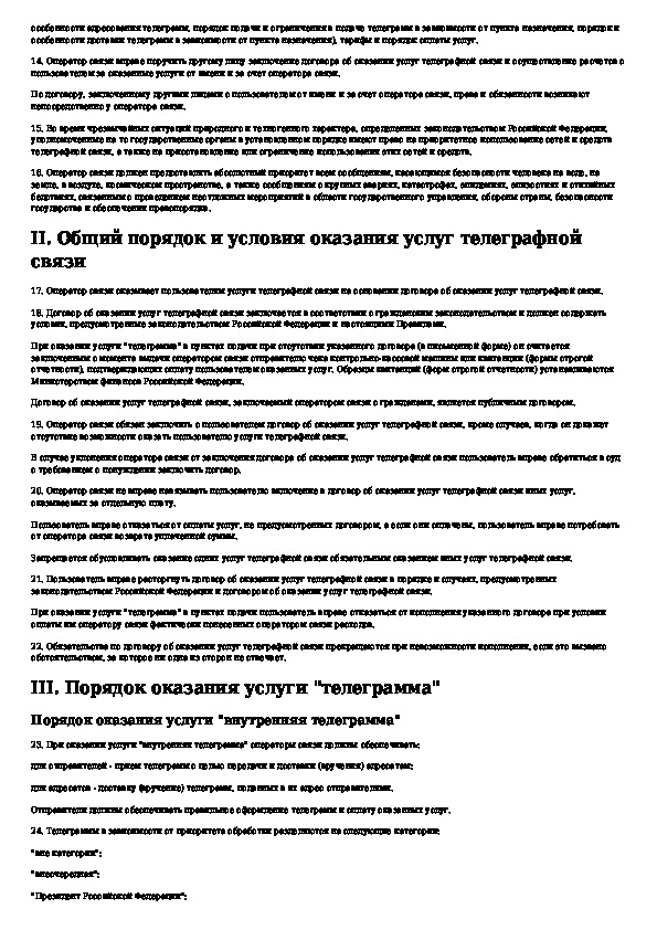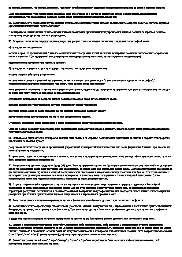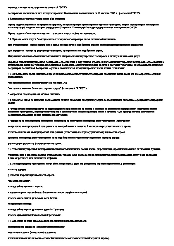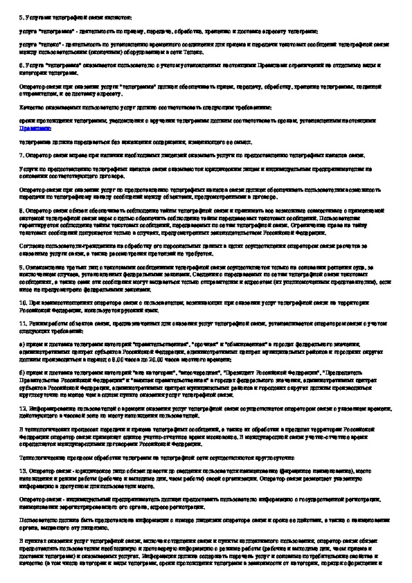 Наша цель состоит в том, чтобы предоставить вам быстрый доступ к содержанию документа Правила оказания услуг телеграфной связи.
