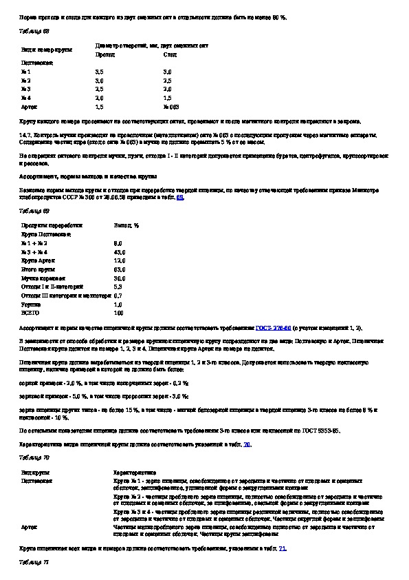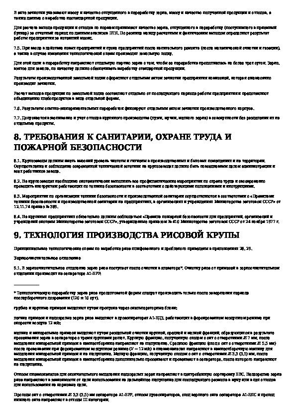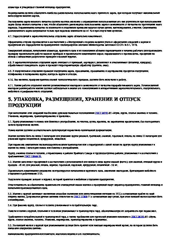 Правила организации и ведения технологического процесса на крупяных предприятиях. Часть 1