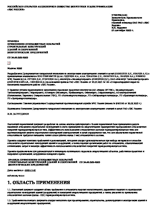 Правила применения огнезащитных покрытий строительных конструкций зданий и сооружений энергетических предприятий