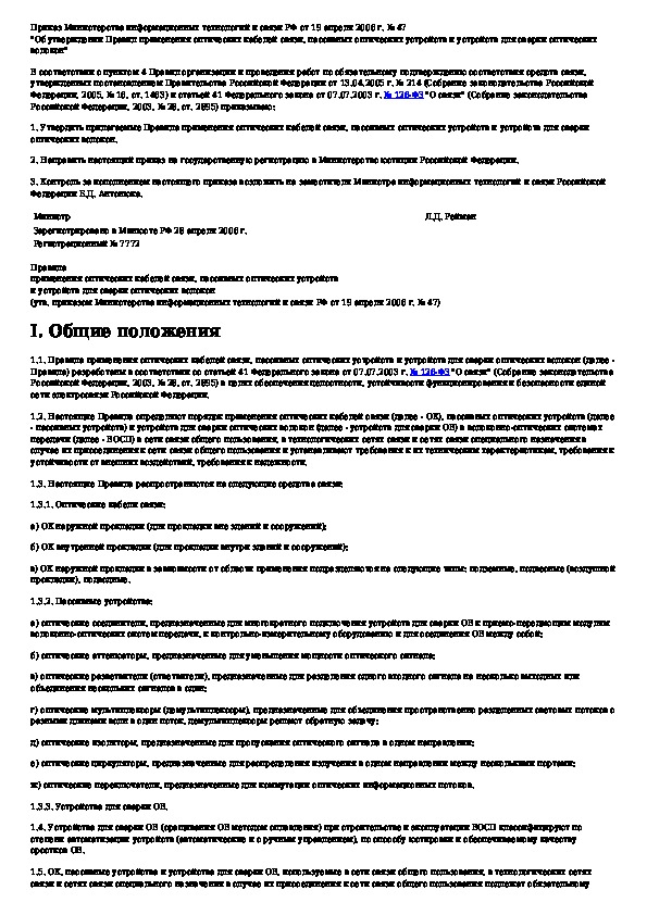 Наша цель состоит в том, чтобы предоставить вам быстрый доступ к содержанию документа Правила применения оптических кабелей связи, пассивных оптических устройств и устройств для сварки оптических волокон.