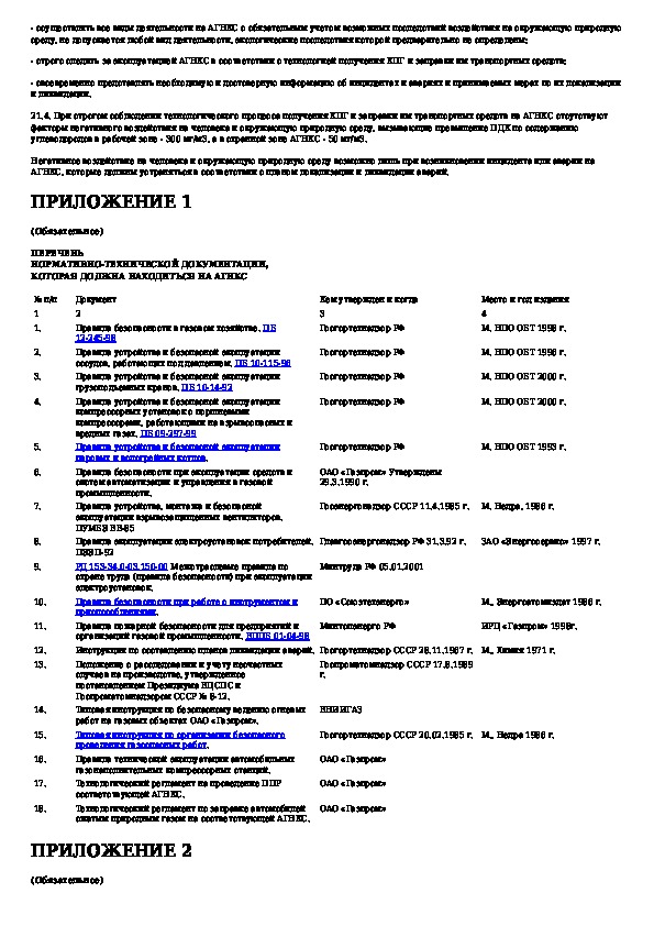 Наша цель состоит в том, чтобы предоставить вам быстрый доступ к содержанию документа Правила технической эксплуатации автомобильных газонаполнительных компрессорных станций.