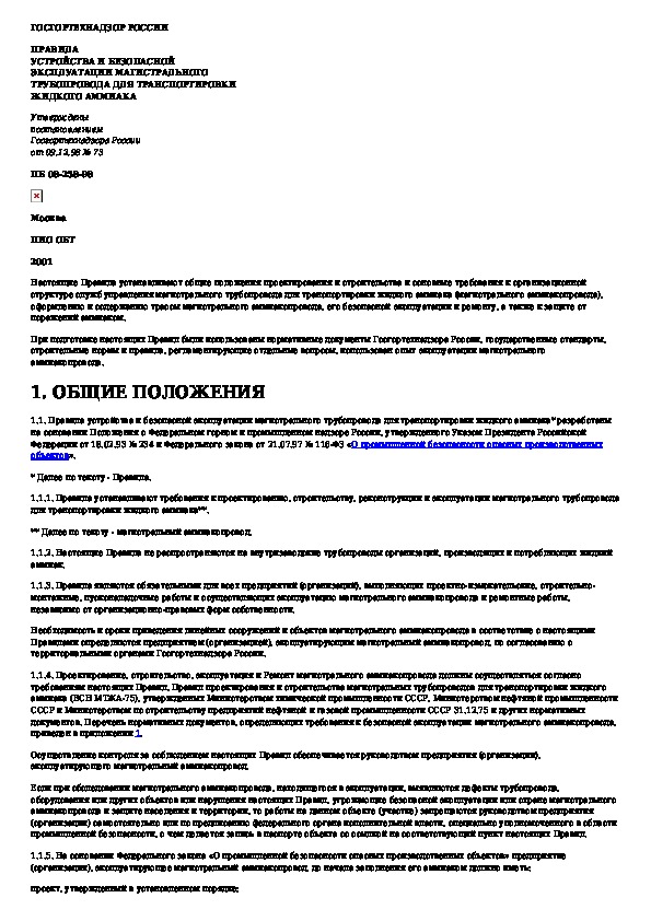Наша цель состоит в том, чтобы предоставить вам быстрый доступ к содержанию документа Правила устройства и безопасной эксплуатации магистрального трубопровода для транспортировки жидкого аммиака.