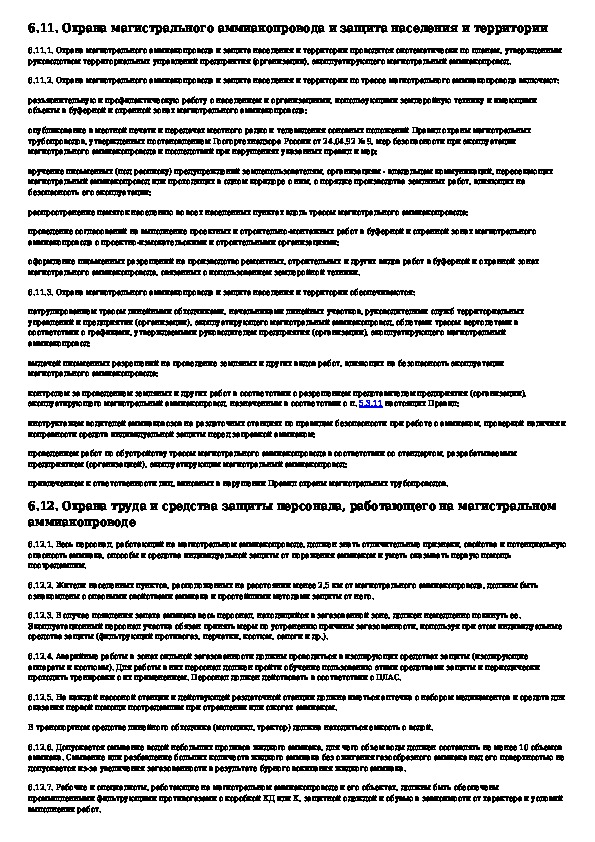 Правила устройства и безопасной эксплуатации магистрального трубопровода для транспортировки жидкого аммиака