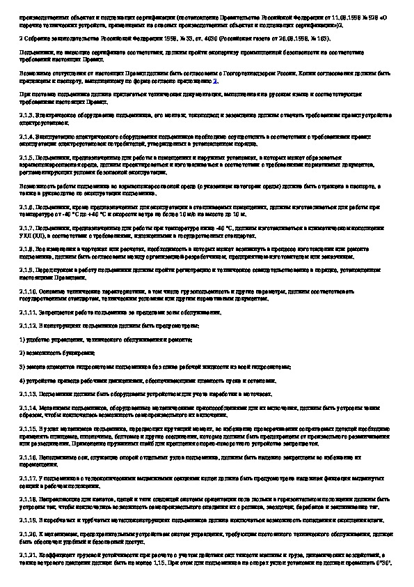 Правила устройства и безопасной эксплуатации подъемников (вышек)