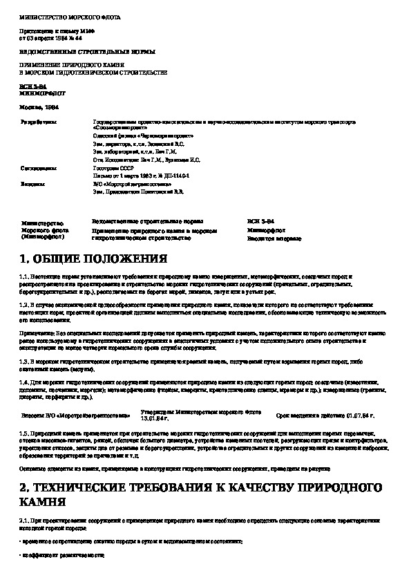 ВСН 5-84/ММФ: Применение природного камня в морском гидротехническом строительстве