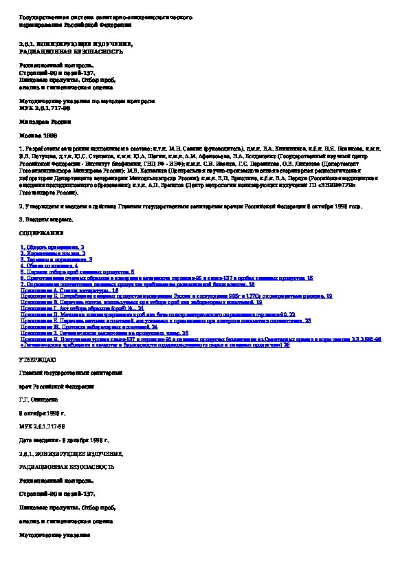 Наша цель состоит в том, чтобы предоставить вам быстрый доступ к содержанию документа Радиационный контроль. Стронций-90 и цезий-137. Пищевые продукты. Отбор проб, анализ и гигиеническая оценка.