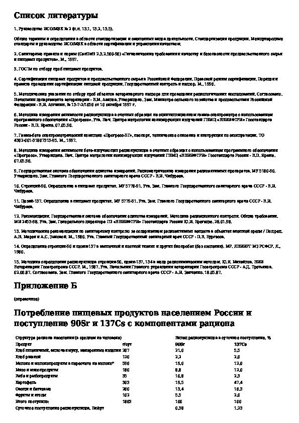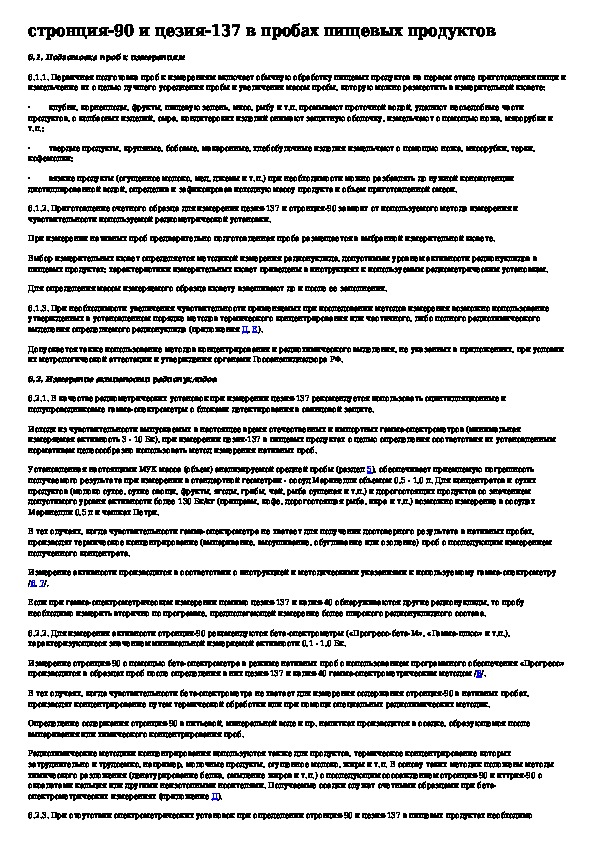 • Загрузка на компьютер - Вы можете также скачать Радиационный контроль. Стронций-90 и цезий-137. Пищевые продукты. Отбор проб, анализ и гигиеническая оценка на свой компьютер и сохранить его в файлах.