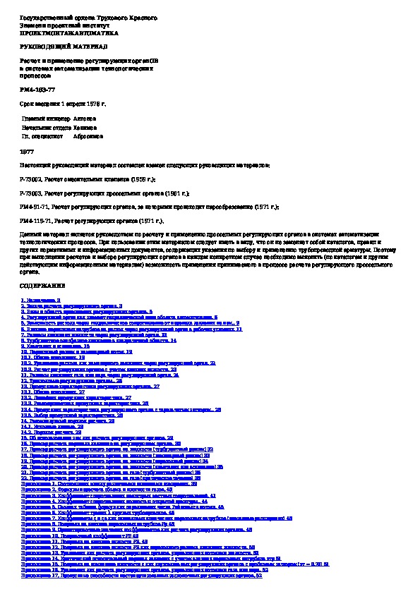 РМ 4-163-77: Расчет и применение регулирующих органов в системах автоматизации технологических процессов