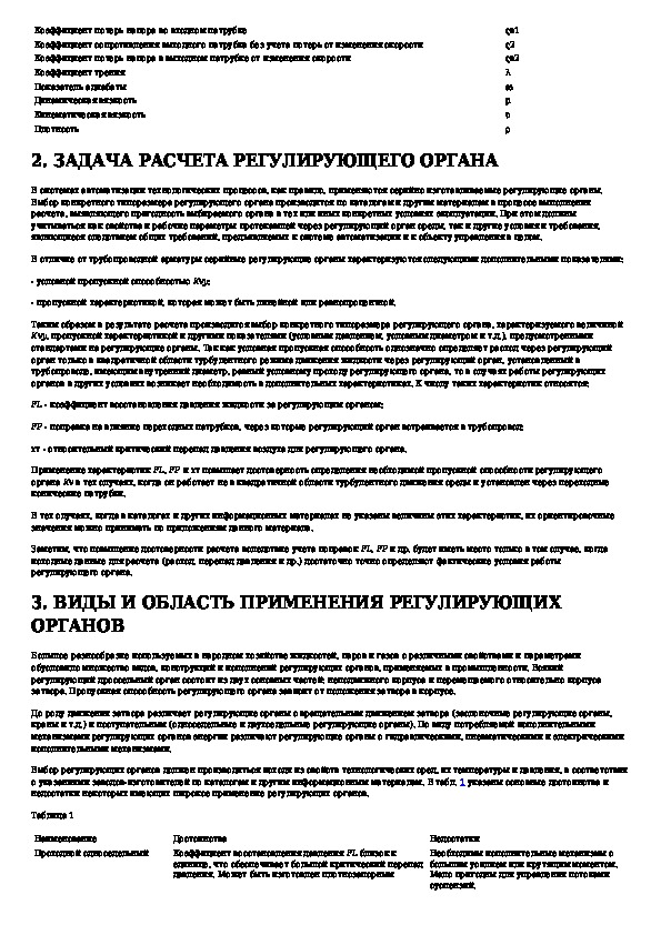 Расчет и применение регулирующих органов в системах автоматизации технологических процессов