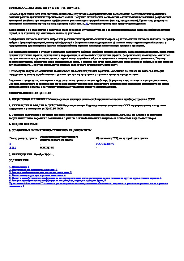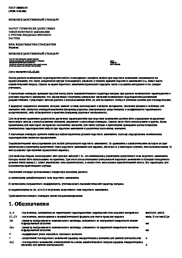 ГОСТ 28895-91: Расчет термически допустимых токов короткого замыкания с учетом неадиабатического нагрева