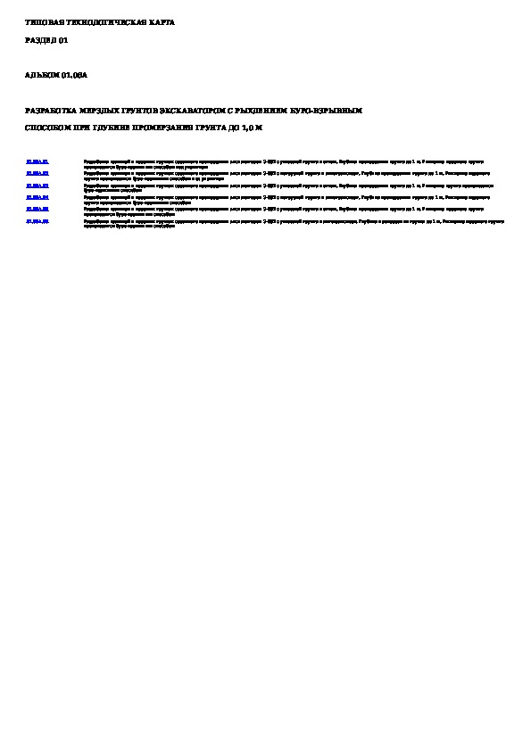 ТТК 01.06А: Разработка мерзлых грунтов экскаваторами с рыхлением буро-взрывным способом при глубине промерзания грунта до 1,0 м