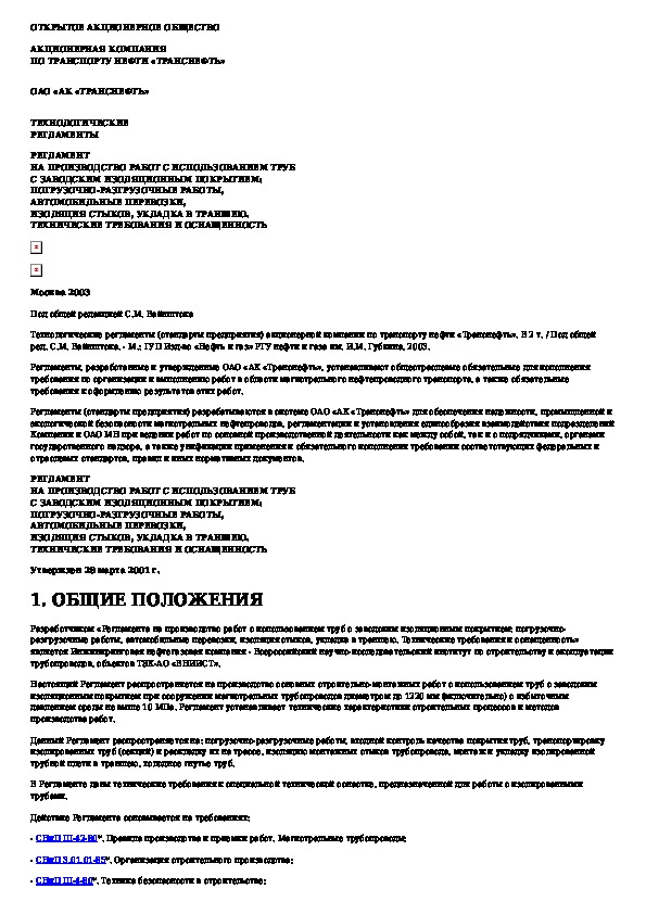 Наша цель состоит в том, чтобы предоставить вам быстрый доступ к содержанию документа Регламент на производство работ с использованием труб с заводским изоляционным покрытием: погрузочно-разгрузочные работы, автомо.