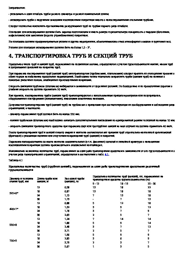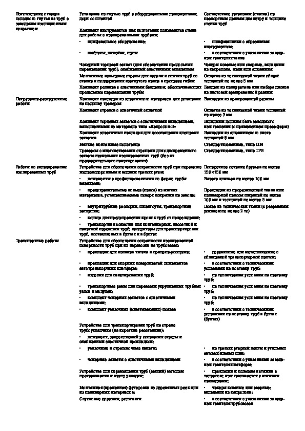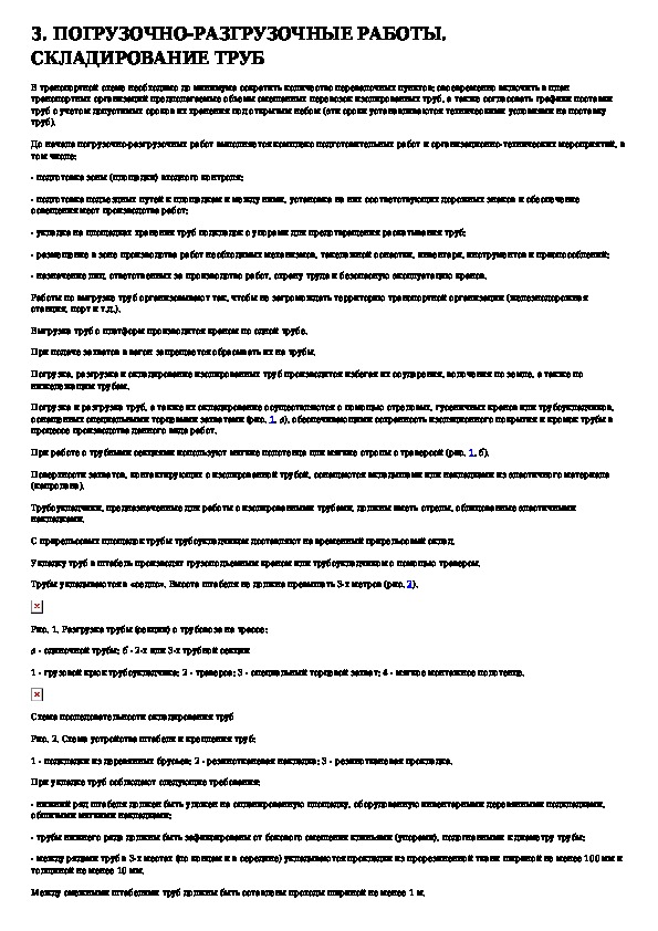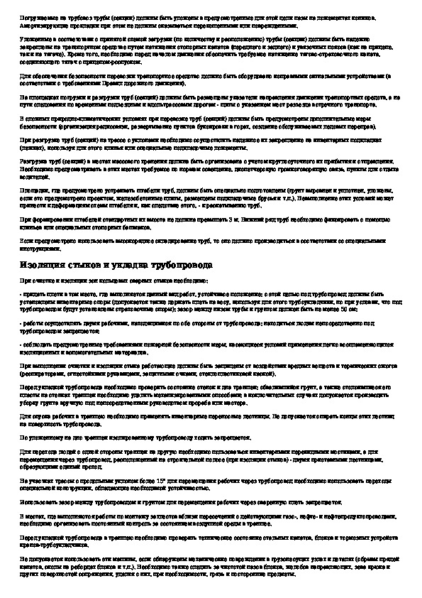 Регламент на производство работ с использованием труб с заводским изоляционным покрытием: погрузочно-разгрузочные работы, автомо