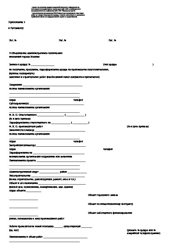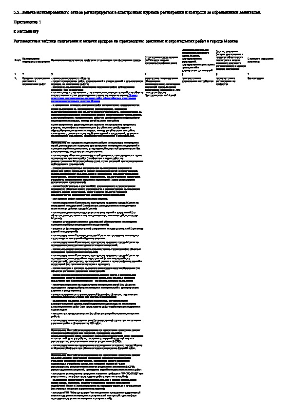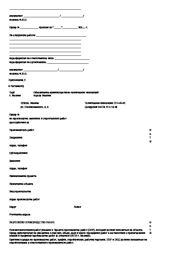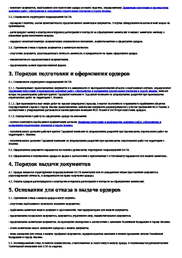 Регламент подготовки и выдачи ордеров на производство земляных и строительных работ в городе Москве