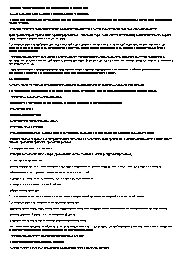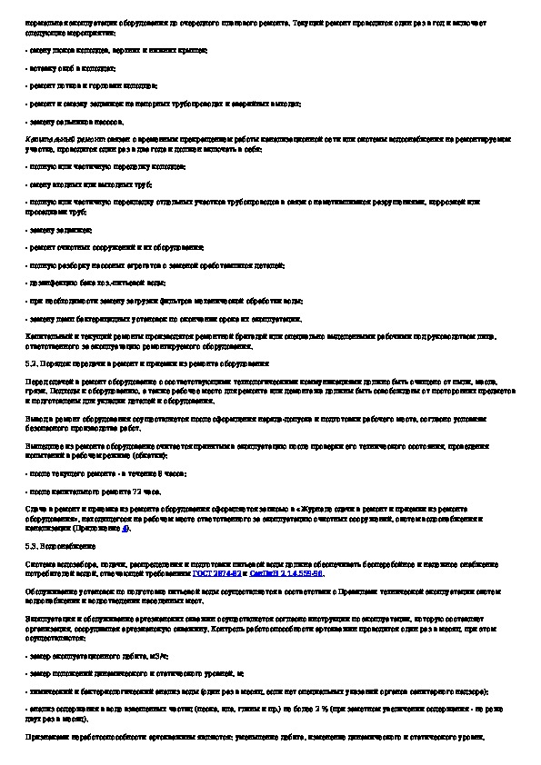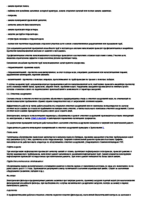 Регламент технического обслуживания и ремонта систем водоснабжения, канализации и очистных сооружений, инженерных коммуникаций