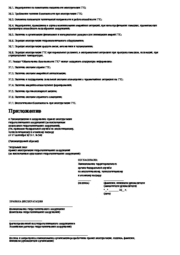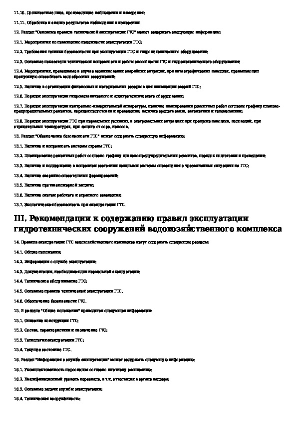 Рекомендации к содержанию правил эксплуатации гидротехнических сооружений (за исключением судоходных гидротехнических сооружен