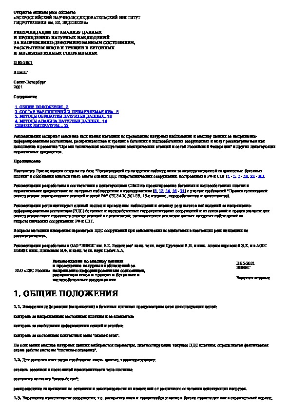Наша цель состоит в том, чтобы предоставить вам быстрый доступ к содержанию документа Рекомендации по анализу данных и проведению натурных наблюдений за напряженно-деформированным состоянием, раскрытием швов и трещ.