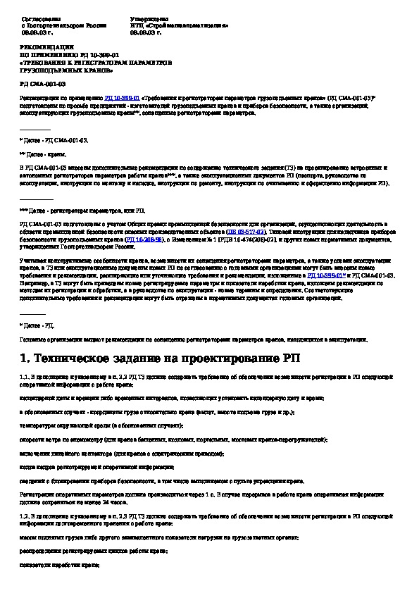 Наша цель состоит в том, чтобы предоставить вам быстрый доступ к содержанию документа Рекомендации по применению РД 10-399-01 "Требования к регистраторам параметров грузоподъемных кранов".