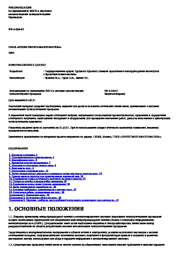 РМ 4-234-91: Рекомендации по применению ВОСП в системах автоматизации технологических процессов