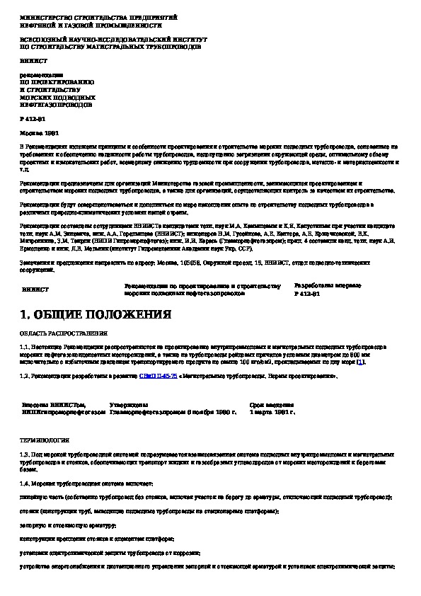 Р 412-81: Рекомендации по проектированию и строительству морских подводных нефтегазопроводов