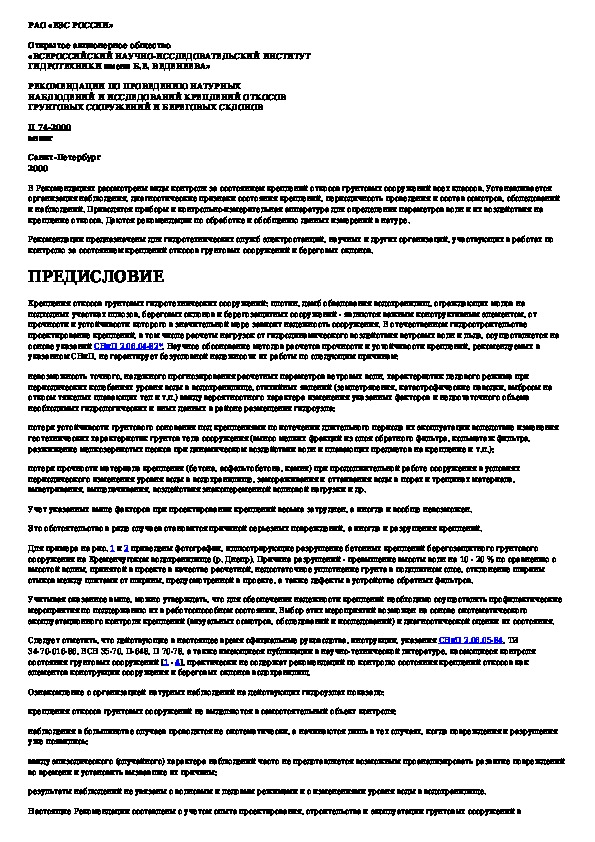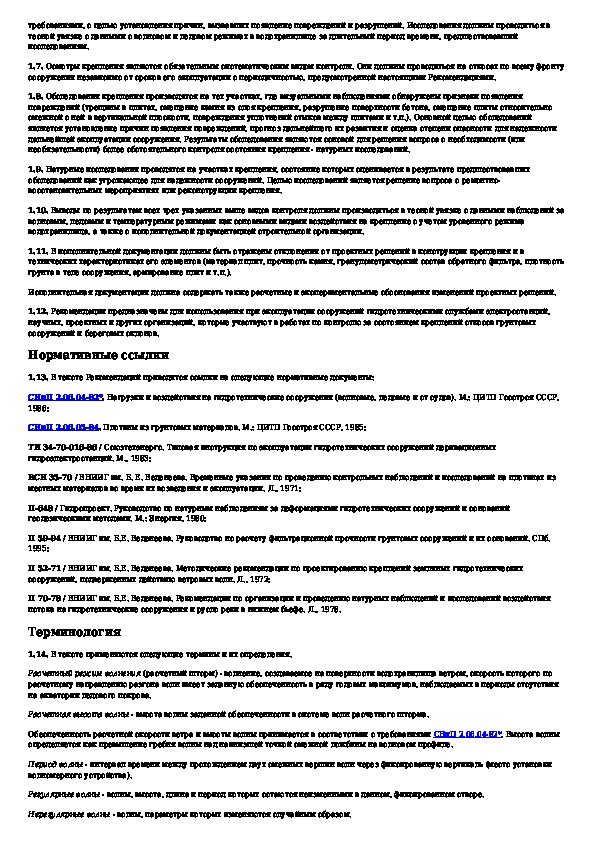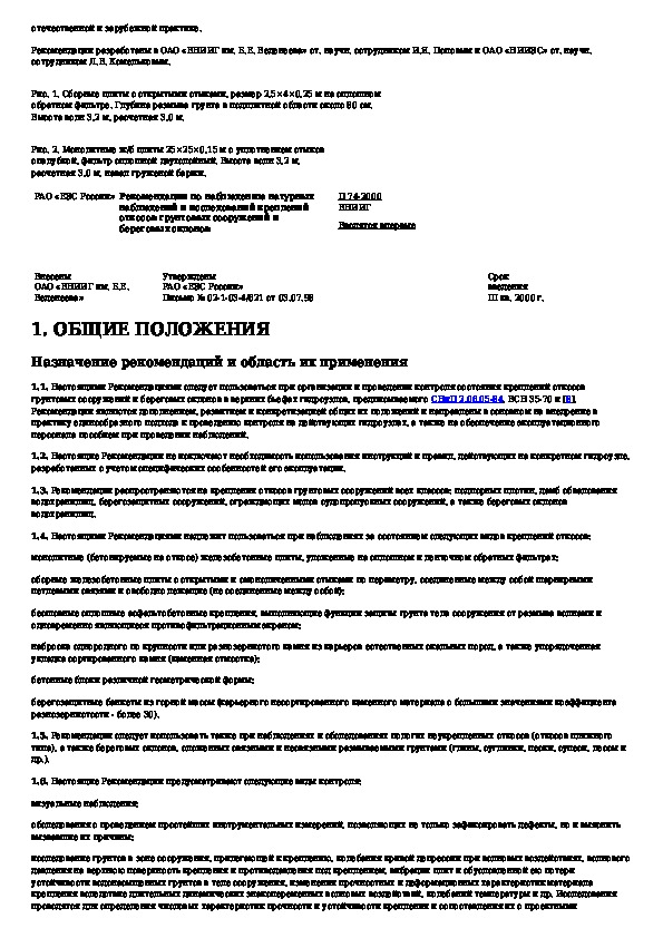 Наша цель состоит в том, чтобы предоставить вам быстрый доступ к содержанию документа Рекомендации по проведению натурных наблюдений и исследований креплений откосов грунтовых сооружений и береговых склонов.
