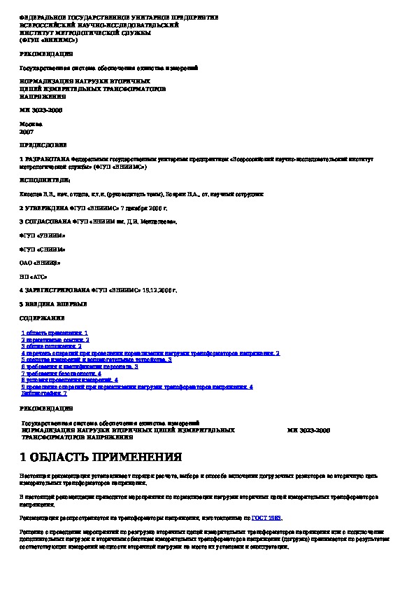 МИ 3023-2006: Рекомендация. Государственная система обеспечения единства измерений. Нормализация нагрузки вторичных цепей измерительных тран