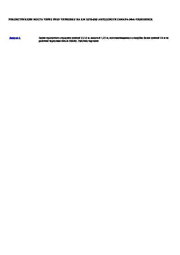 Наша цель состоит в том, чтобы предоставить вам быстрый доступ к содержанию документа Реконструкция моста через реку Черновку на КМ 1076-626 автодороги Самара-Уфа-Челябинск.