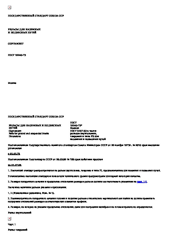 ГОСТ 19240-73: Рельсы для наземных и подвесных путей. Сортамент