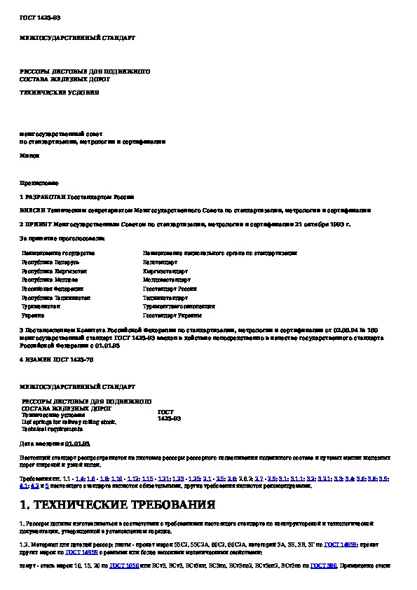 ГОСТ 1425-93: Рессоры листовые для подвижного состава железных дорог. Технические условия