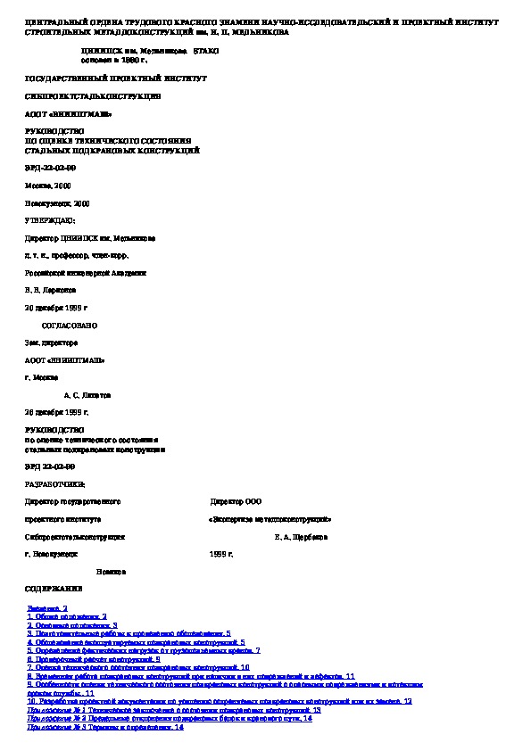 Наша цель состоит в том, чтобы предоставить вам быстрый доступ к содержанию документа Руководство по оценке технического состояния стальных подкрановых конструкций.