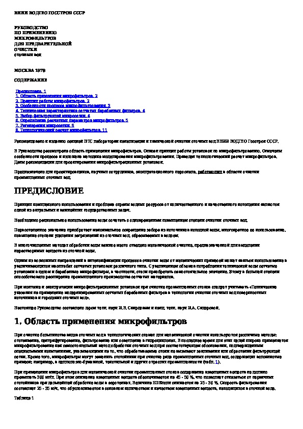Наша цель состоит в том, чтобы предоставить вам быстрый доступ к содержанию документа Руководство по применению микрофильтров для предварительной очистки сточных вод.