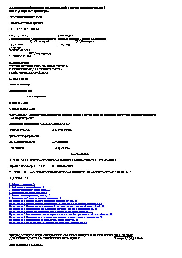 РД 31.31.39-86: Руководство по проектированию свайных пирсов и набережных для строительства в сейсмических районах