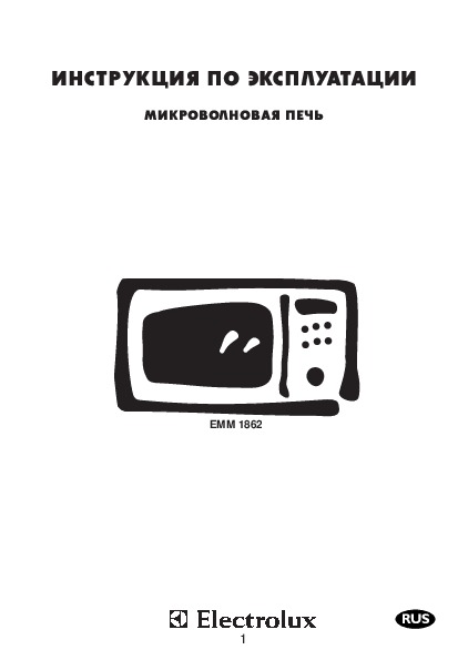Перед Вами Руководство пользователя микроволновой печи Electrolux EMM 1862. Вы можете ознакомиться и скачать данное руководство по эксплуатации бесплатно. Инструкция по применению на русском языке, предложенная производителем, позволяет правильно использовать Вашу бытовую технику и электронику.
